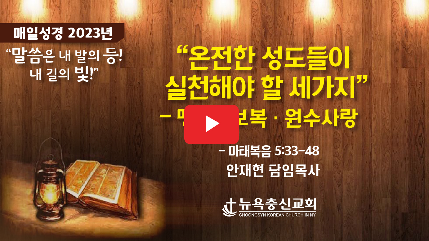 (마태복음 5:33-48) 33 또 옛 사람에게 말한바 헛 맹세를 하지 말고 네 맹세한 것을 주께 지키라 하였다는 것을 너희가...