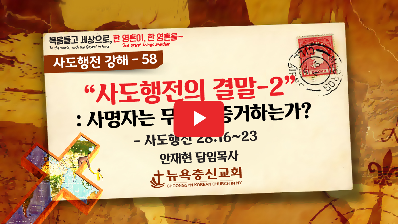 (사도행전 28:23-31) 23 저희가 일자를 정하고 그의 우거하는 집에 많이 오니 바울이 아침부터 저녁까지 강론하여...