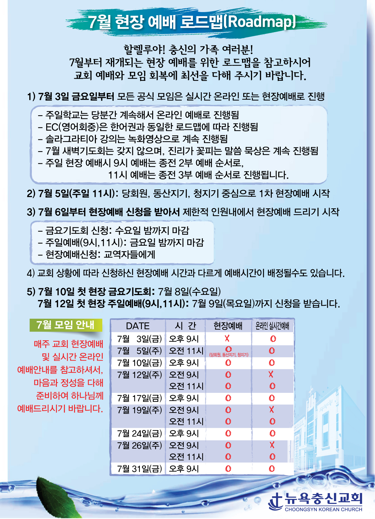 뉴욕충신교회 > 주보 > 7월 현장 예배 안내