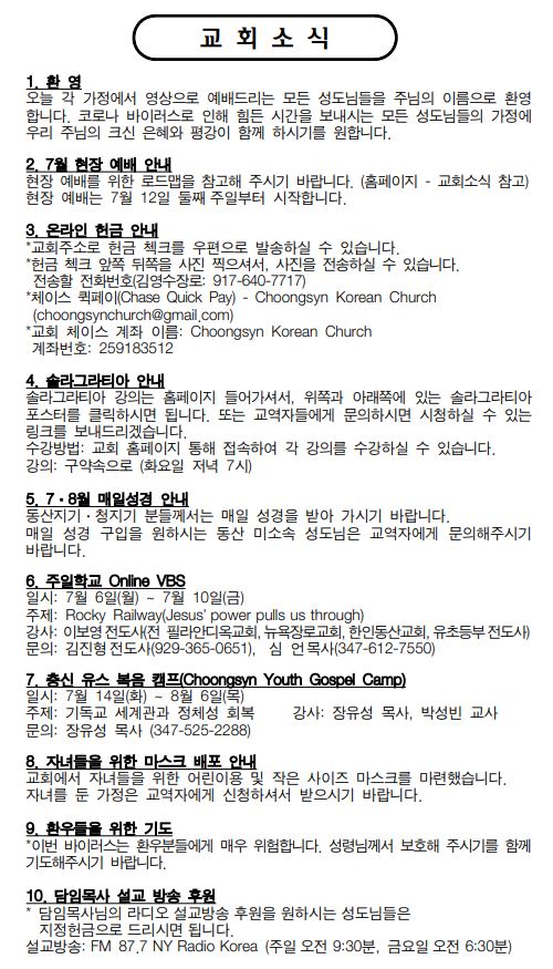 뉴욕충신교회 > 주보 > 6월 28일 주보