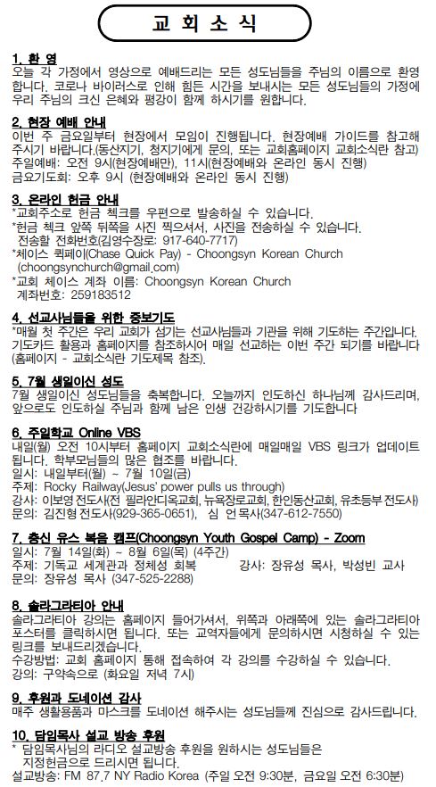 7월 5일 주보 Jul 4, 2020 0 Comment Post By:CSKC Share: Prev Next You Might Also Like 18 Oct 2025 0 10월 19일 주일예배 주보 11 Oct 2025 0 10월 12일 주일예배 주보 5 Oct 2025 0 한마음 10월 기도제목 Leave Comment Your email address will not be published.