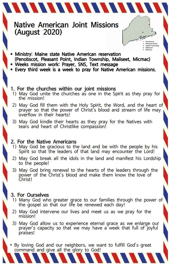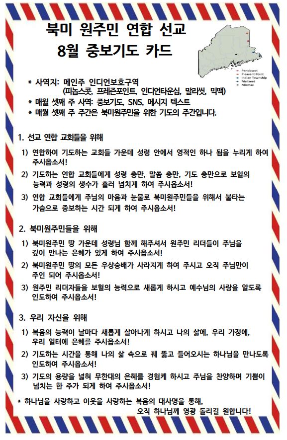 8월 북미원주민 연합중보 기도카드 Aug 15, 2020 0 Comment Post By:CSKC Share: Prev Next You Might Also Like 18 Oct 2025 0 10월 19일 주일예배 주보 11 Oct 2025 0 10월 12일 주일예배 주보 5 Oct 2025 0 한마음 10월 기도제목 Leave Comment Your email address will not be published.