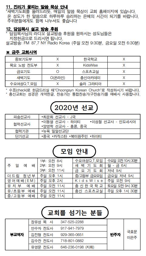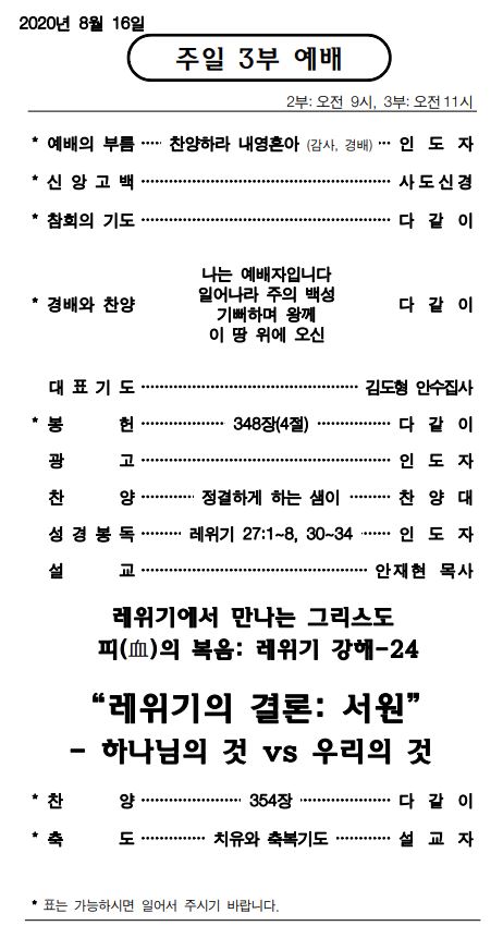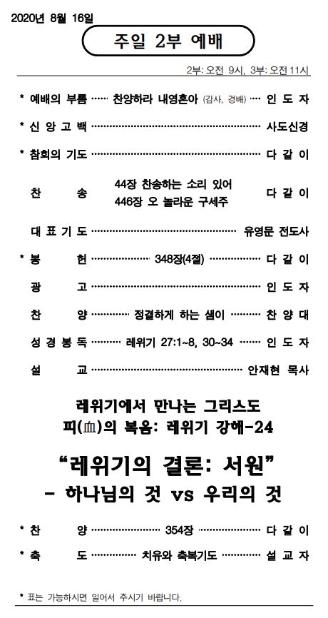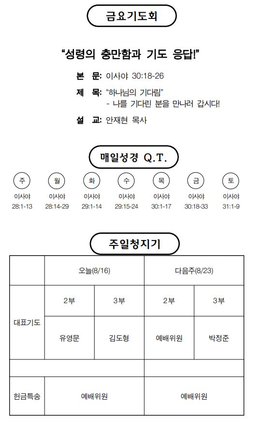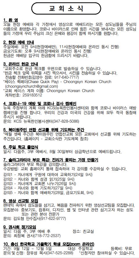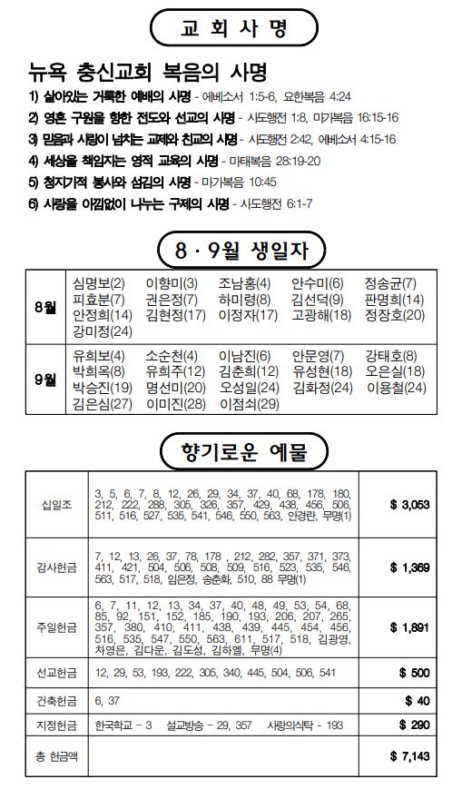 뉴욕충신교회 > 주보 > 8월 16일 주보