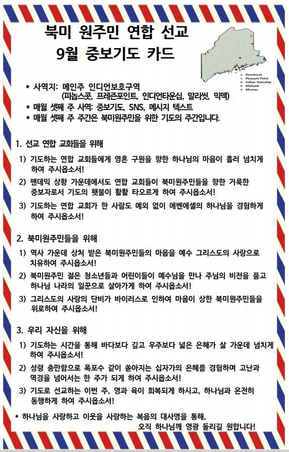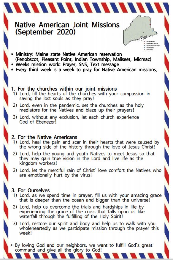9월 북미원주민 연합 선교 중보기도 카드 Sep 19, 2020 0 Comment Post By:CSKC Share: Prev Next You Might Also Like 18 Oct 2025 0 10월 19일 주일예배 주보 11 Oct 2025 0 10월 12일 주일예배 주보 5 Oct 2025 0 한마음 10월 기도제목 Leave Comment Your email address will not be published.