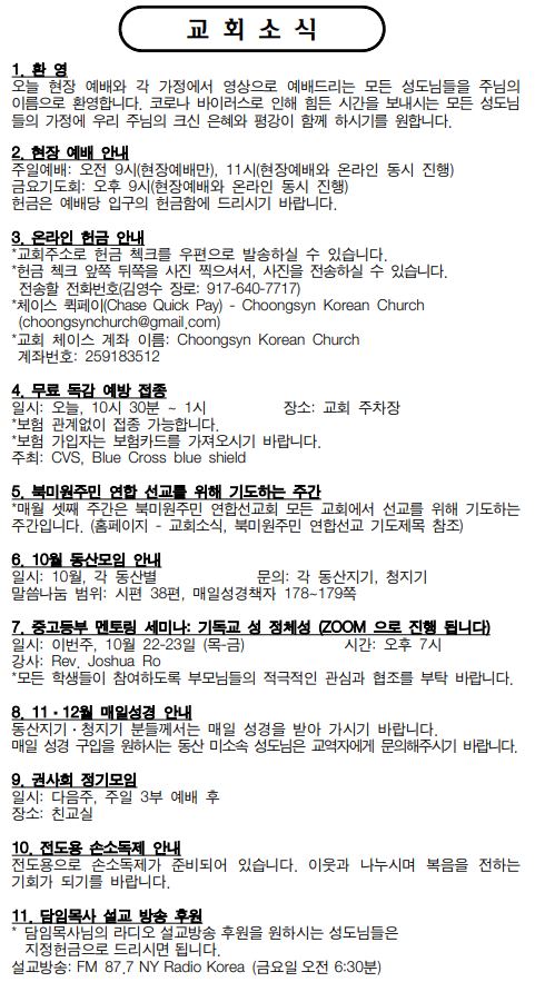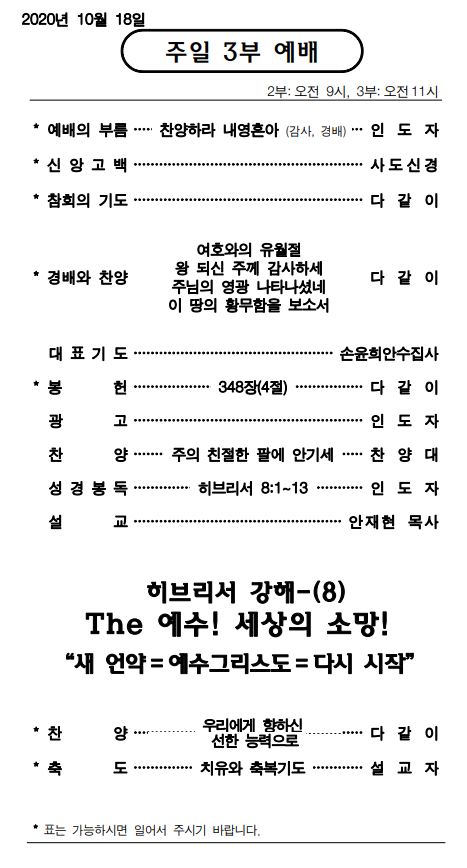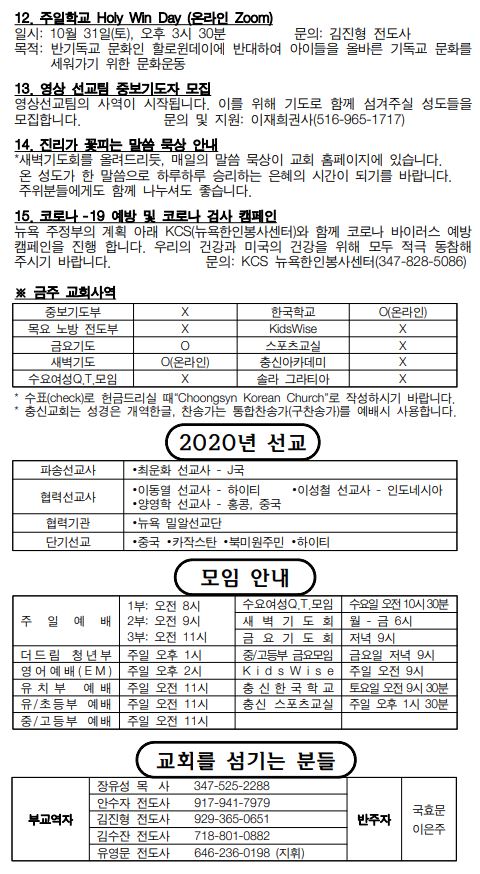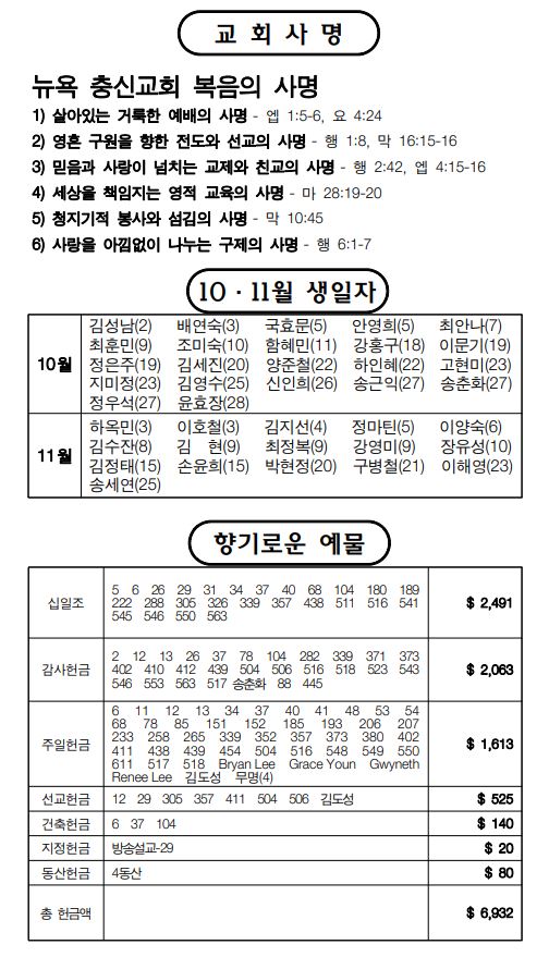 뉴욕충신교회 > 주보 > 10월 18일 주보