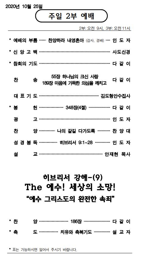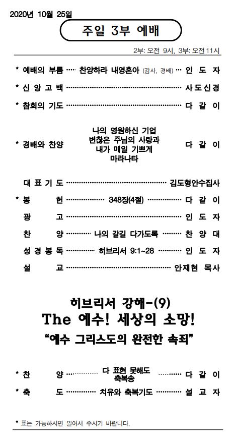 10월 19일 주일예배 주보