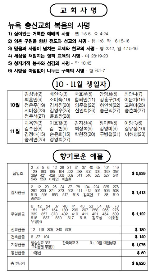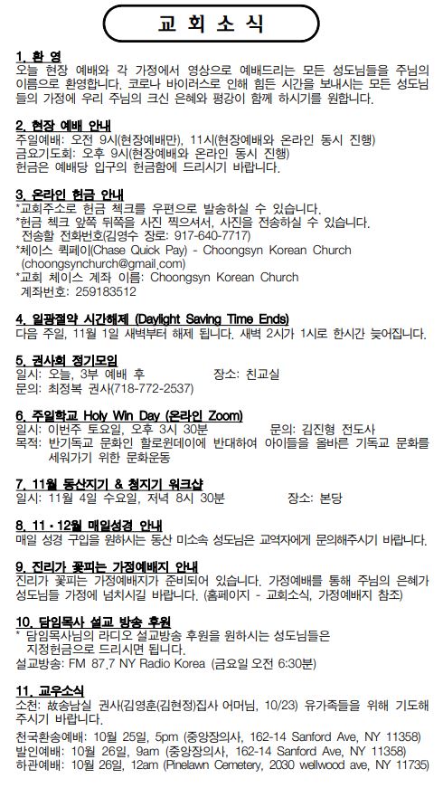 뉴욕충신교회 > 주보 > 10월 25일 주보