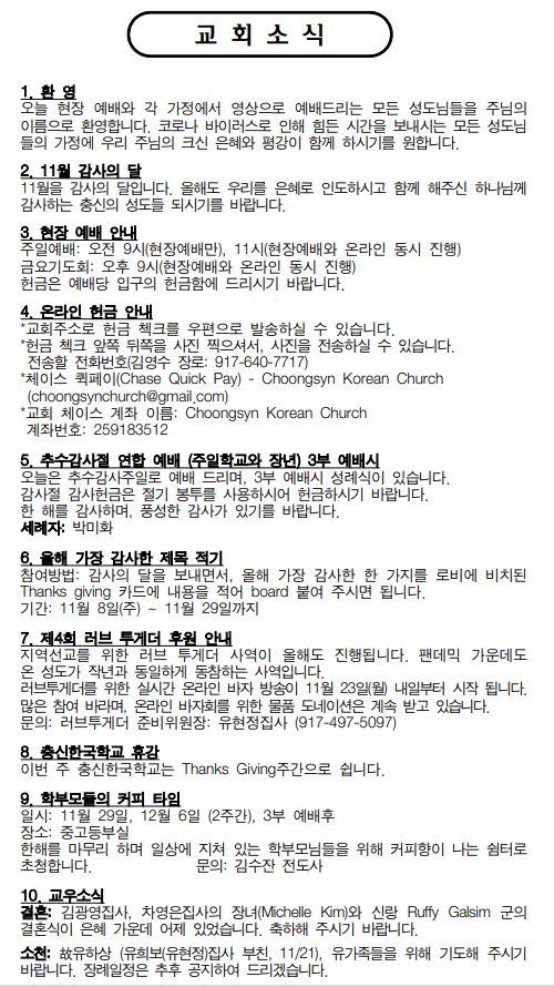11월 22일 주보 Nov 22, 2020 0 Comment Post By:CSKC Share: Prev Next You Might Also Like 18 Oct 2025 0 10월 19일 주일예배 주보 11 Oct 2025 0 10월 12일 주일예배 주보 5 Oct 2025 0 한마음 10월 기도제목 Leave Comment Your email address will not be published.