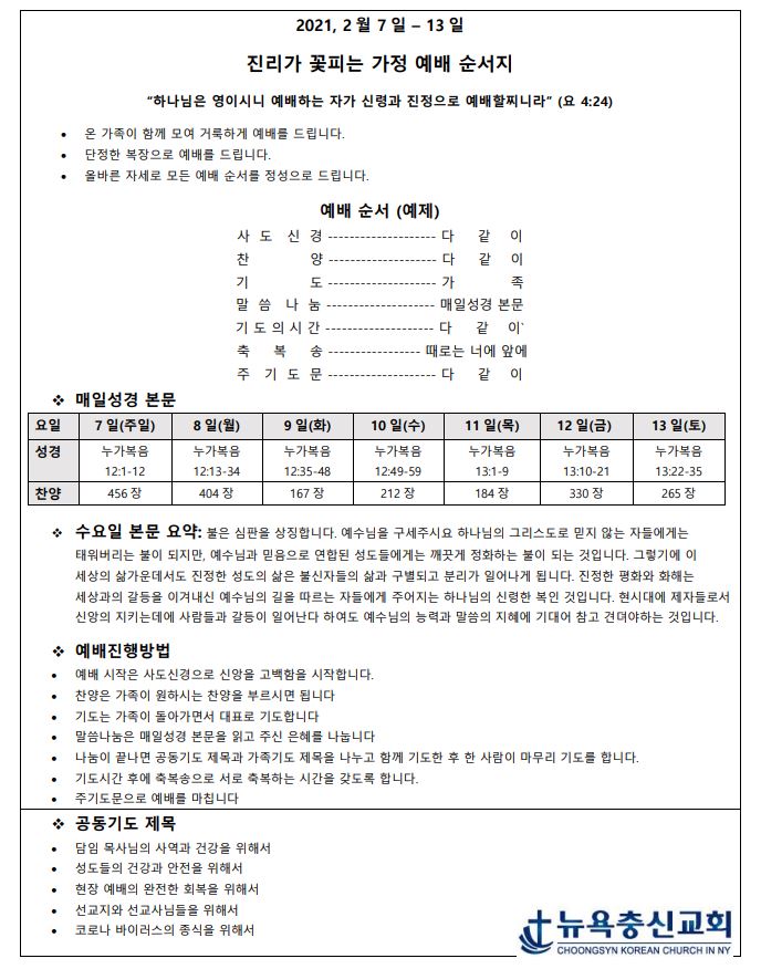 2월 1주차 가정 예배지 Feb 6, 2021 0 Comment Post By:CSKC Share: Prev Next You Might Also Like 25 Oct 2025 0 10월 26일 주일예배 주보 18 Oct 2025 0 10월 19일 주일예배 주보 11 Oct 2025 0 10월 12일 주일예배 주보 Leave Comment Your email address will not be published.