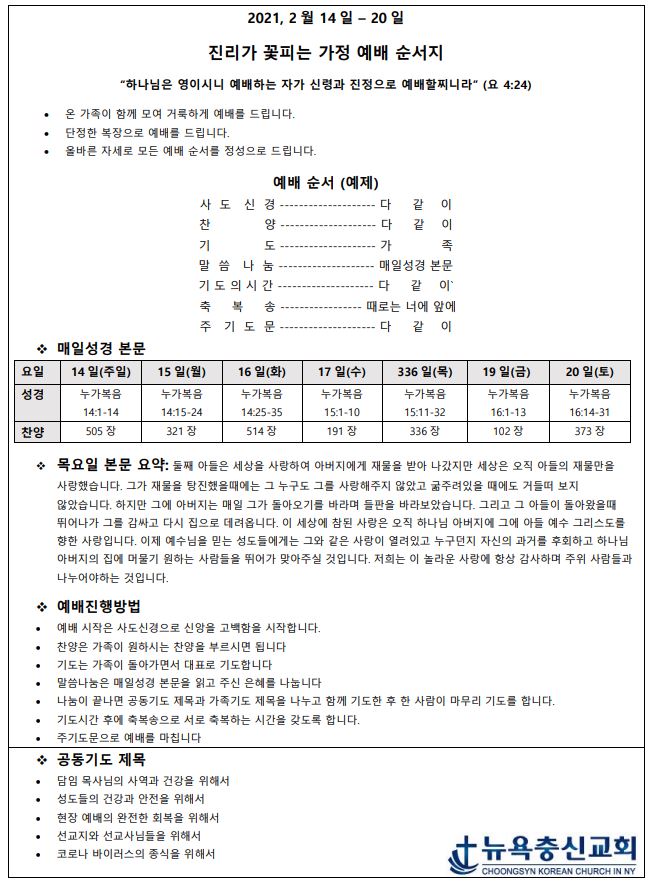 2월 2주차 가정 예배지 Feb 13, 2021 0 Comment Post By:CSKC Share: Prev Next You Might Also Like 25 Oct 2025 0 10월 26일 주일예배 주보 18 Oct 2025 0 10월 19일 주일예배 주보 11 Oct 2025 0 10월 12일 주일예배 주보 Leave Comment Your email address will not be published.