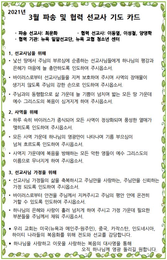 3월 파송 및 협력 선교사 중보카드 Mar 6, 2021 0 Comment Post By:CSKC Share: Prev Next You Might Also Like 25 Oct 2025 0 10월 26일 주일예배 주보 18 Oct 2025 0 10월 19일 주일예배 주보 11 Oct 2025 0 10월 12일 주일예배 주보 Leave Comment Your email address will not be published.