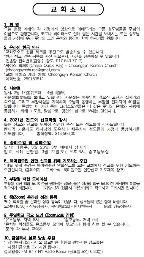 3월 21일 주보 Mar 20, 2021 0 Comment Post By:CSKC Share: Prev Next You Might Also Like 25 Oct 2025 0 10월 26일 주일예배 주보 18 Oct 2025 0 10월 19일 주일예배 주보 11 Oct 2025 0 10월 12일 주일예배 주보 Leave Comment Your email address will not be published.