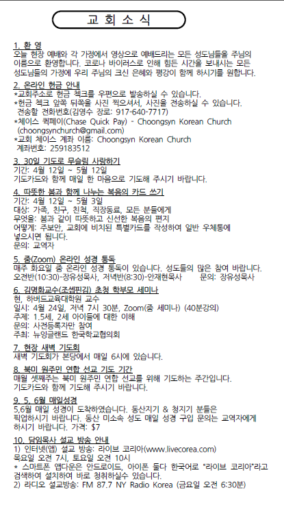 4월 18일 주일 주보 Apr 17, 2021 0 Comment Post By:CSKC Share: Prev Next You Might Also Like 25 Oct 2025 0 10월 26일 주일예배 주보 18 Oct 2025 0 10월 19일 주일예배 주보 11 Oct 2025 0 10월 12일 주일예배 주보 Leave Comment Your email address will not be published.