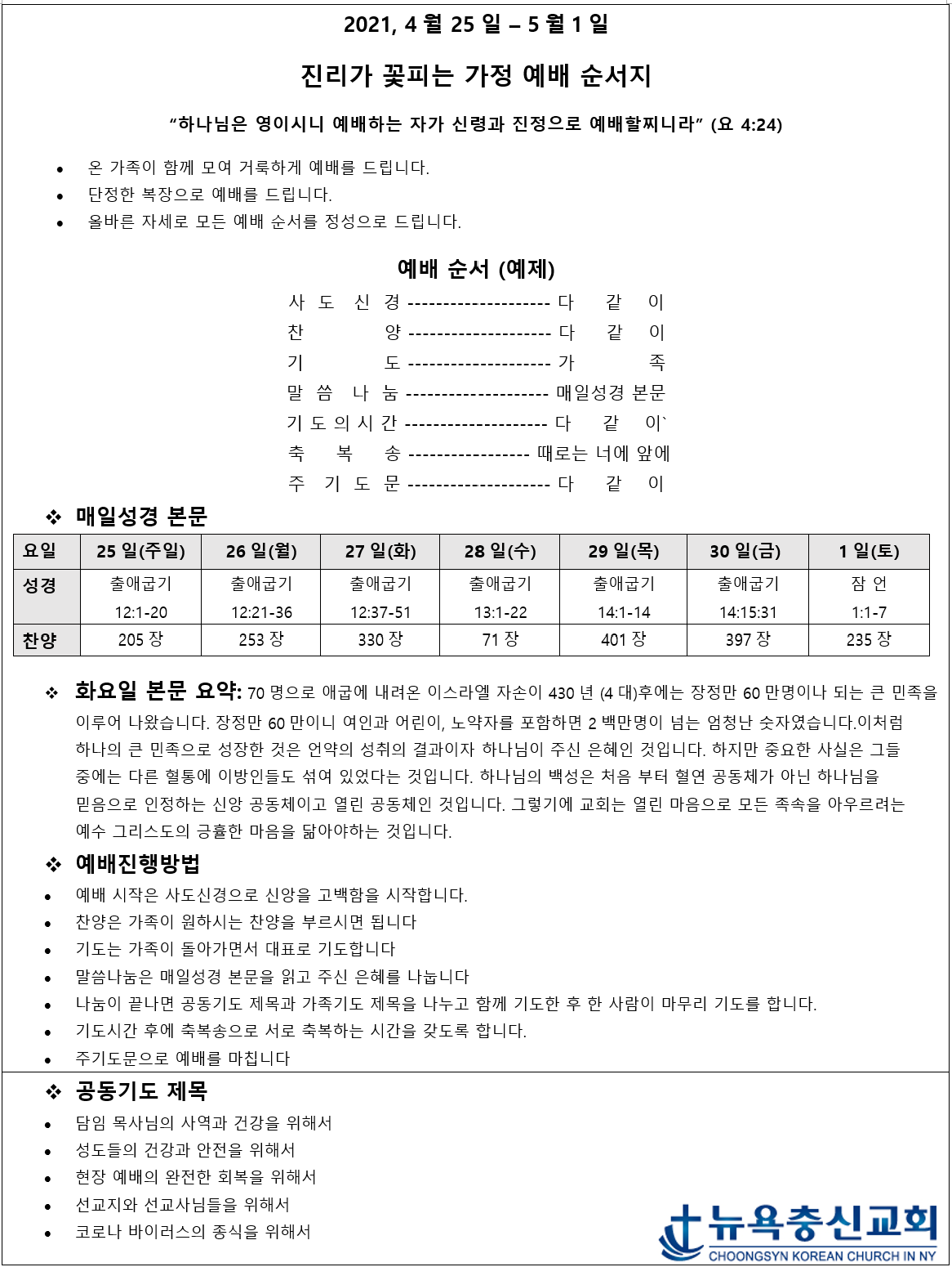 4월 4주차 가정 예배지 Apr 24, 2021 0 Comment Post By:CSKC Share: Prev Next You Might Also Like 25 Oct 2025 0 10월 26일 주일예배 주보 18 Oct 2025 0 10월 19일 주일예배 주보 11 Oct 2025 0 10월 12일 주일예배 주보 Leave Comment Your email address will not be published.