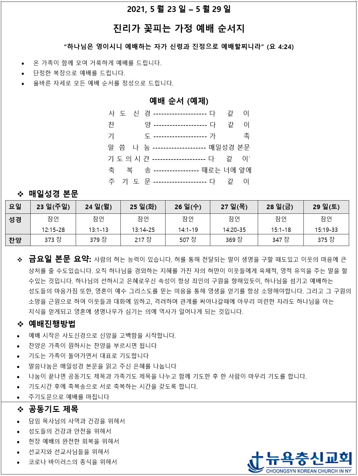 5월 4주차 가정예배지 May 22, 2021 0 Comment Post By:CSKC Share: Prev Next You Might Also Like 25 Oct 2025 0 10월 26일 주일예배 주보 18 Oct 2025 0 10월 19일 주일예배 주보 11 Oct 2025 0 10월 12일 주일예배 주보 Leave Comment Your email address will not be published.