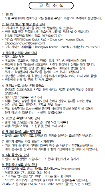6월 13일 주일 주보 Jun 13, 2021 0 Comment Post By:CSKC Share: Prev Next You Might Also Like 25 Oct 2025 0 10월 26일 주일예배 주보 18 Oct 2025 0 10월 19일 주일예배 주보 11 Oct 2025 0 10월 12일 주일예배 주보 Leave Comment Your email address will not be published.