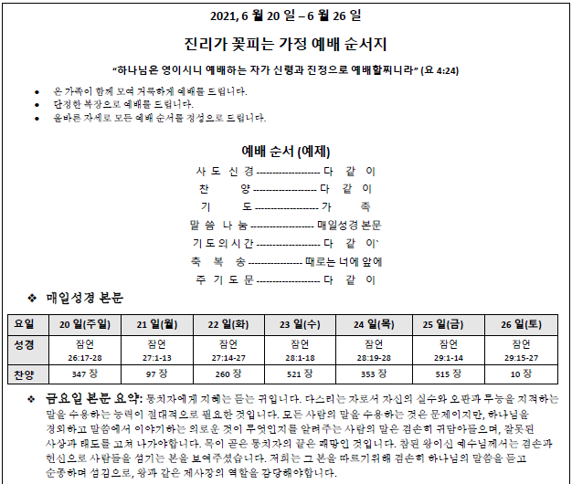 뉴욕충신교회 > 주보 > 6월 3주차 가정예배지