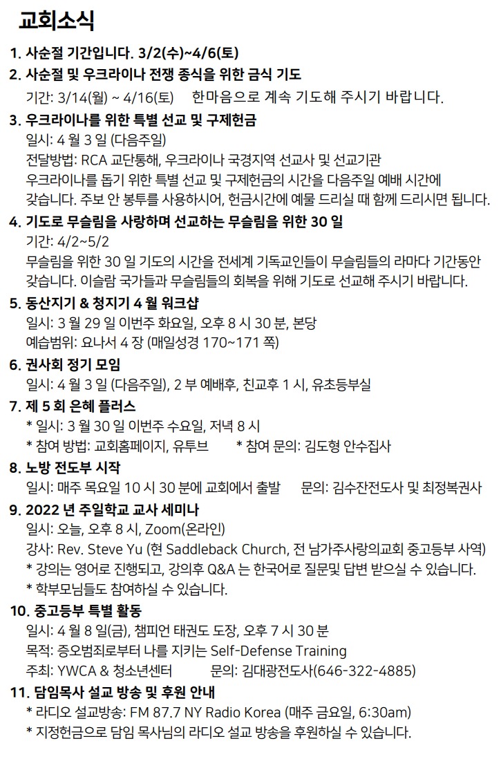 3월 27일 주일예배 주보 Mar 26, 2022 0 Comment Post By:CSKC Share: Prev Next You Might Also Like 18 Oct 2025 0 10월 19일 주일예배 주보 11 Oct 2025 0 10월 12일 주일예배 주보 5 Oct 2025 0 한마음 10월 기도제목