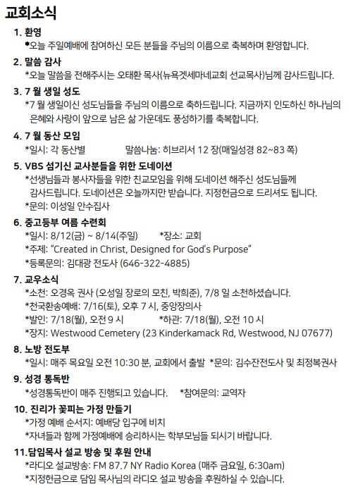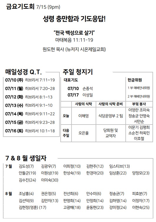 7월 10일 주일예배 주보 Jul 9, 2022 0 Comment Post By:CSKC Share: Prev Next You Might Also Like 18 Oct 2025 0 10월 19일 주일예배 주보 11 Oct 2025 0 10월 12일 주일예배 주보 5 Oct 2025 0 한마음 10월 기도제목