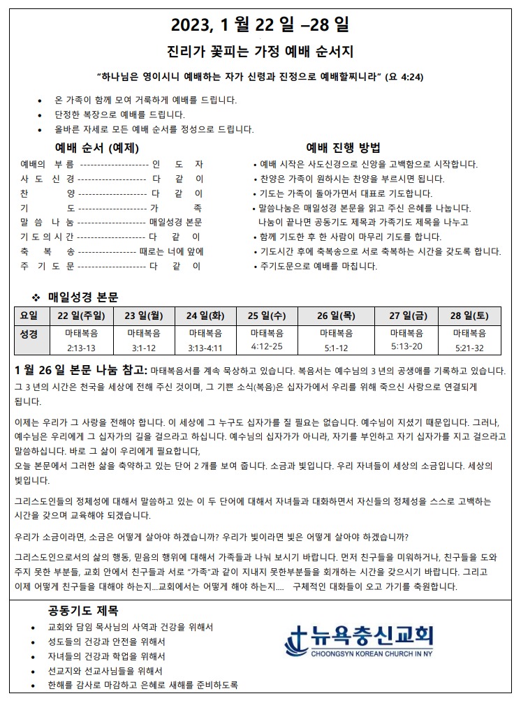 뉴욕충신교회 > 나눔 > 1월 4주차 가정예배지