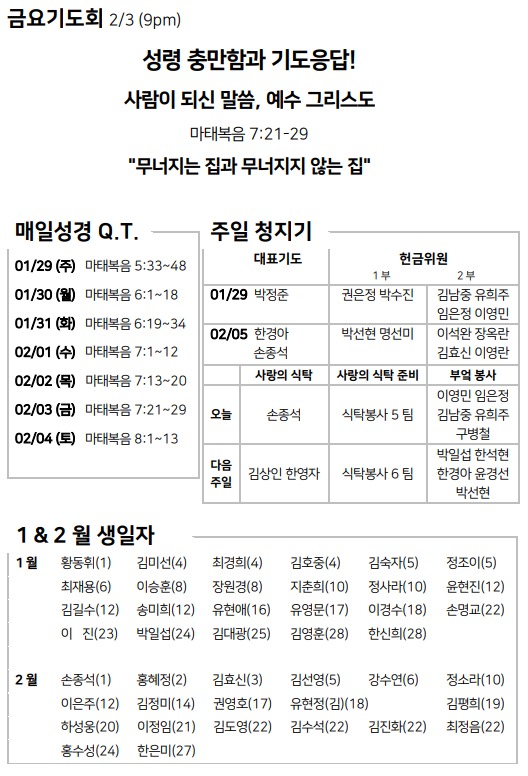 1월 29일 주일예배 주보