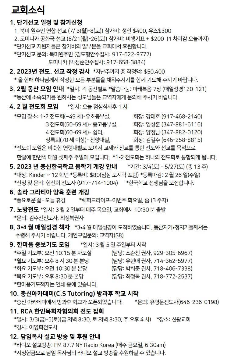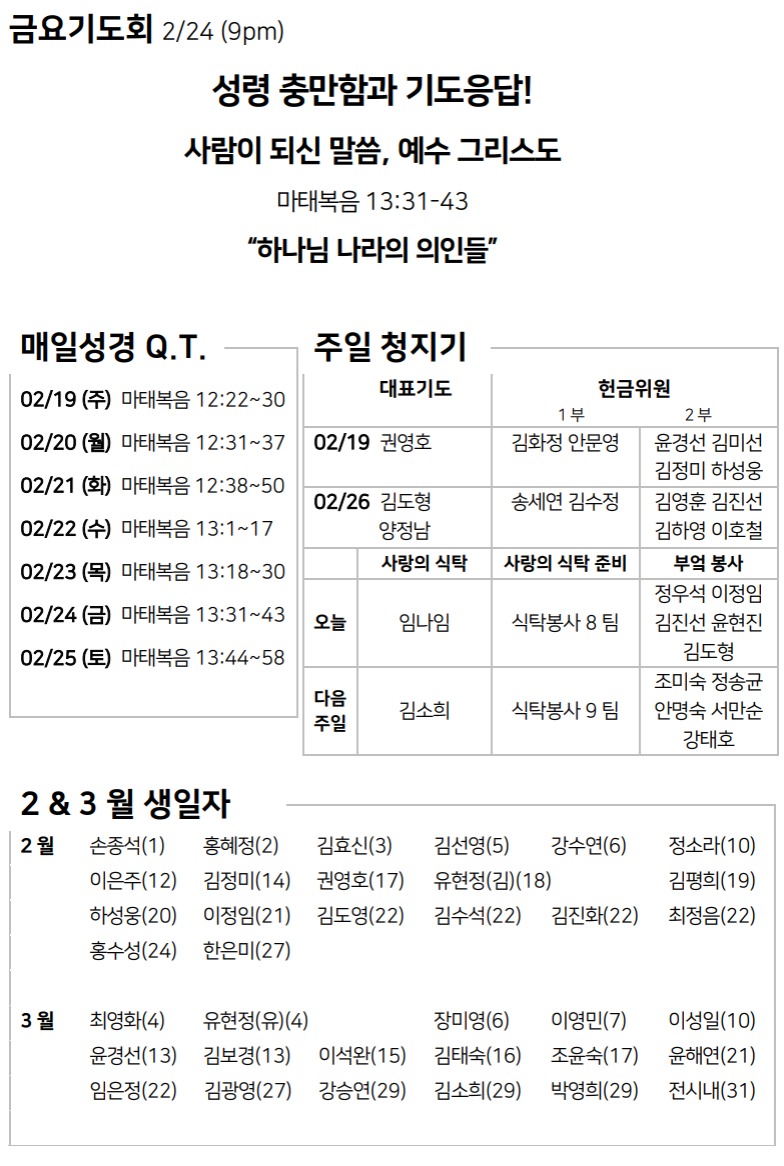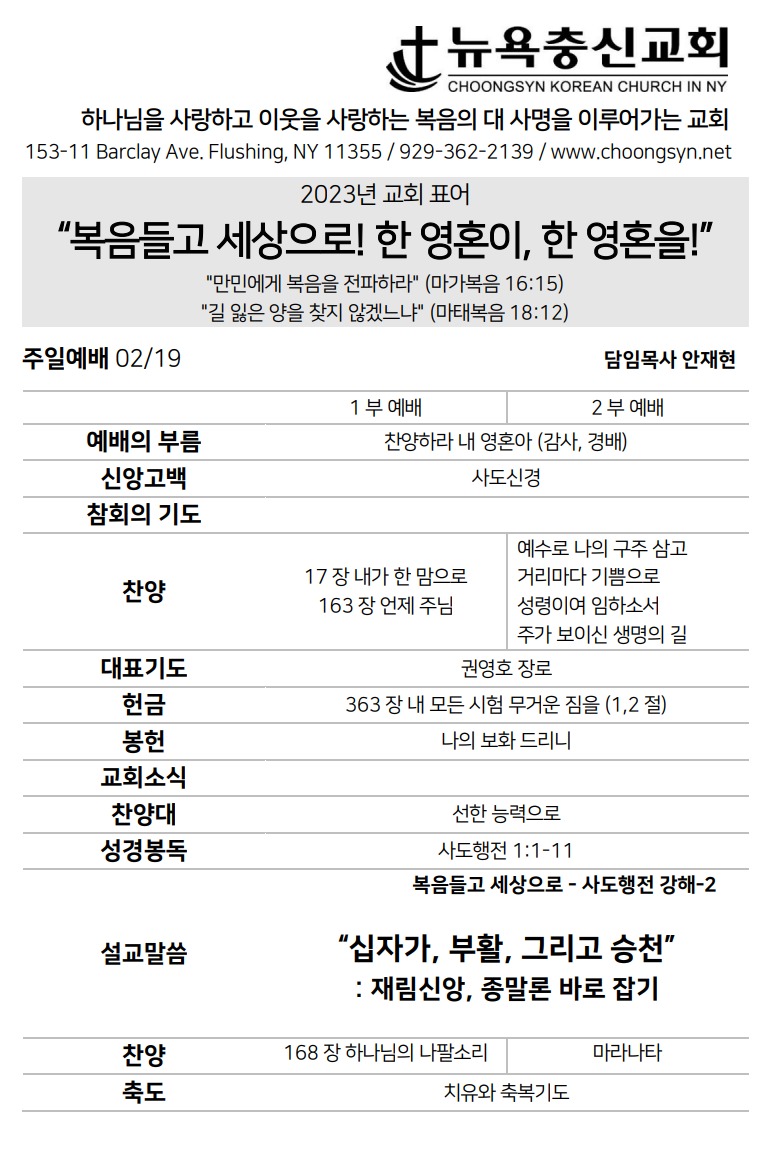 2월 19일 주일예배 주보 Feb 19, 2023 0 Comment Post By:CSKC Share: Prev Next You Might Also Like 25 Oct 2025 0 10월 26일 주일예배 주보 18 Oct 2025 0 10월 19일 주일예배 주보 11 Oct 2025 0 10월 12일 주일예배 주보