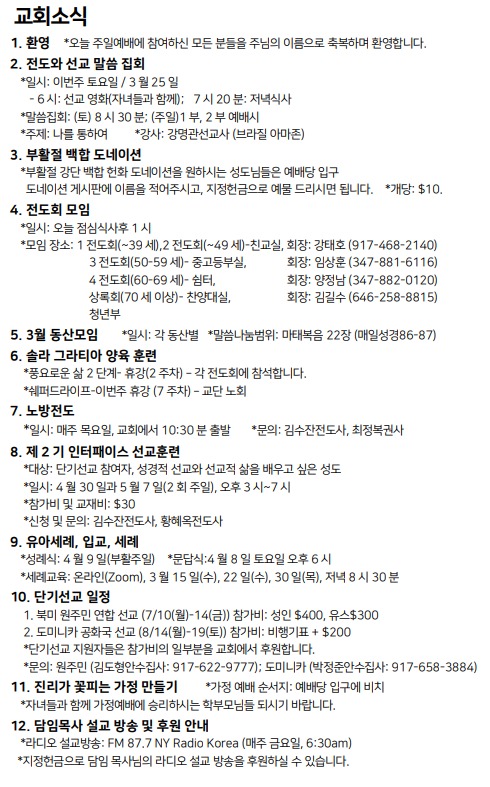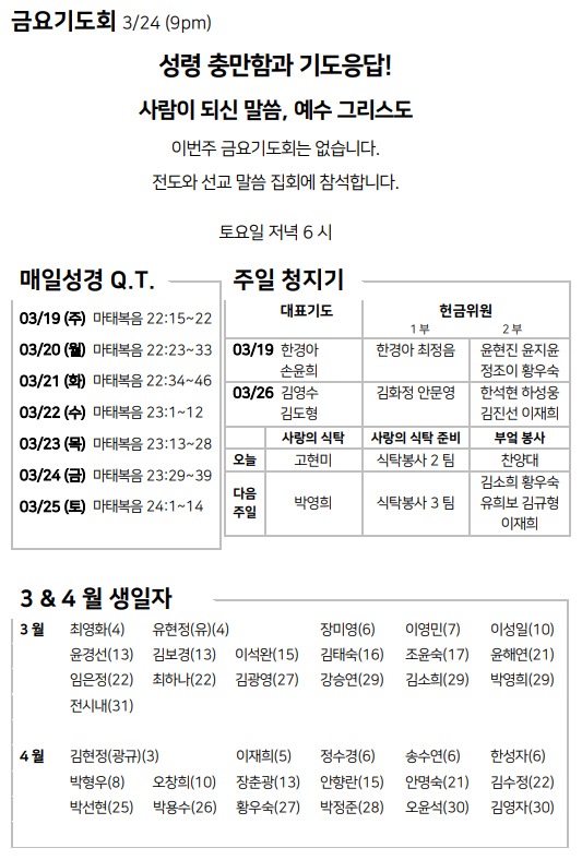 3월 19일 주일예배 주보 Mar 18, 2023 0 Comment Post By:CSKC Share: Prev Next You Might Also Like 25 Oct 2025 0 10월 26일 주일예배 주보 18 Oct 2025 0 10월 19일 주일예배 주보 11 Oct 2025 0 10월 12일 주일예배 주보