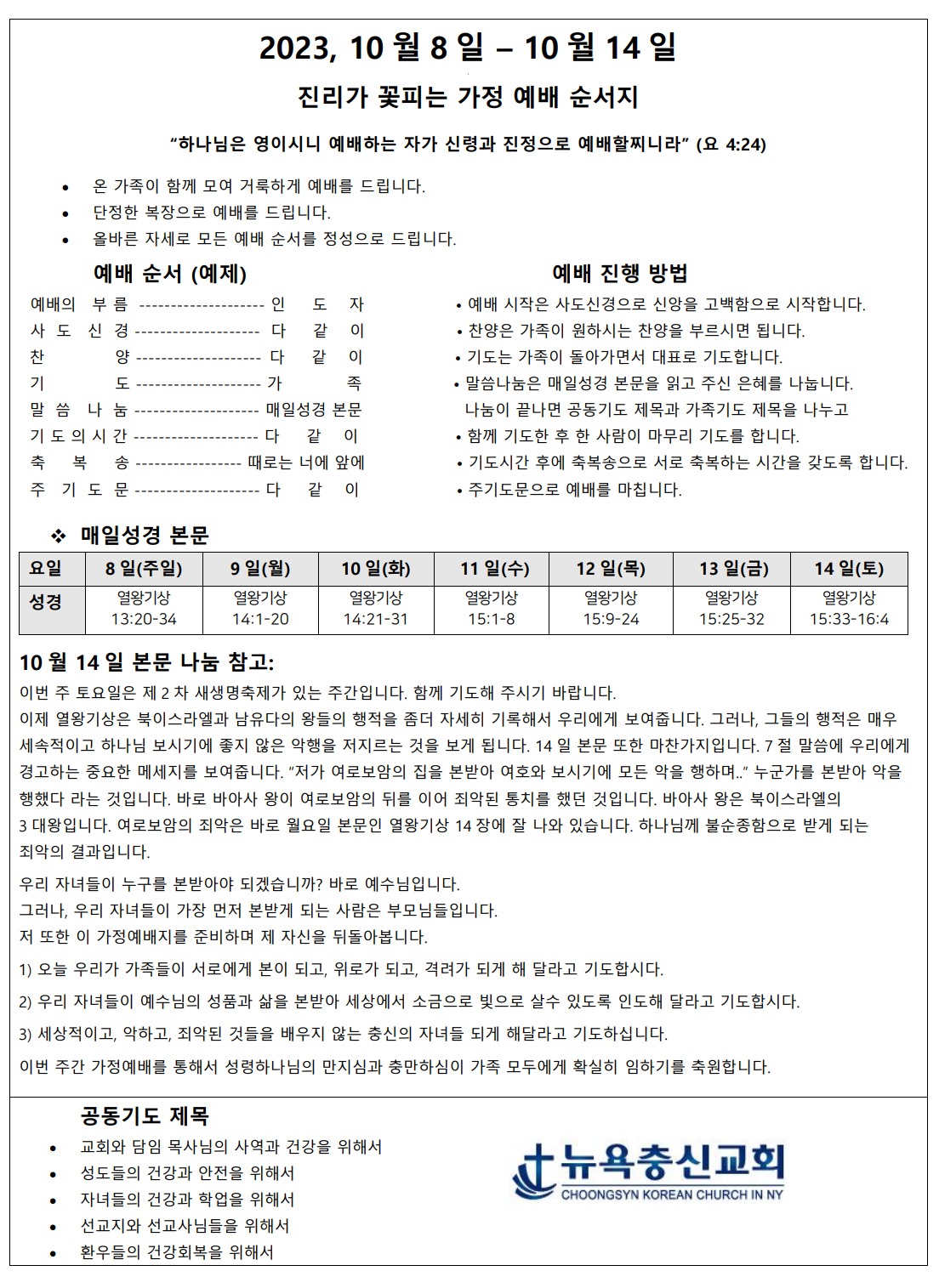 10월 2주차 가정예배지 Oct 7, 2023 0 Comment Post By:CSKC Share: Prev Next You Might Also Like 18 Oct 2025 0 10월 19일 주일예배 주보 11 Oct 2025 0 10월 12일 주일예배 주보 5 Oct 2025 0 한마음 10월 기도제목