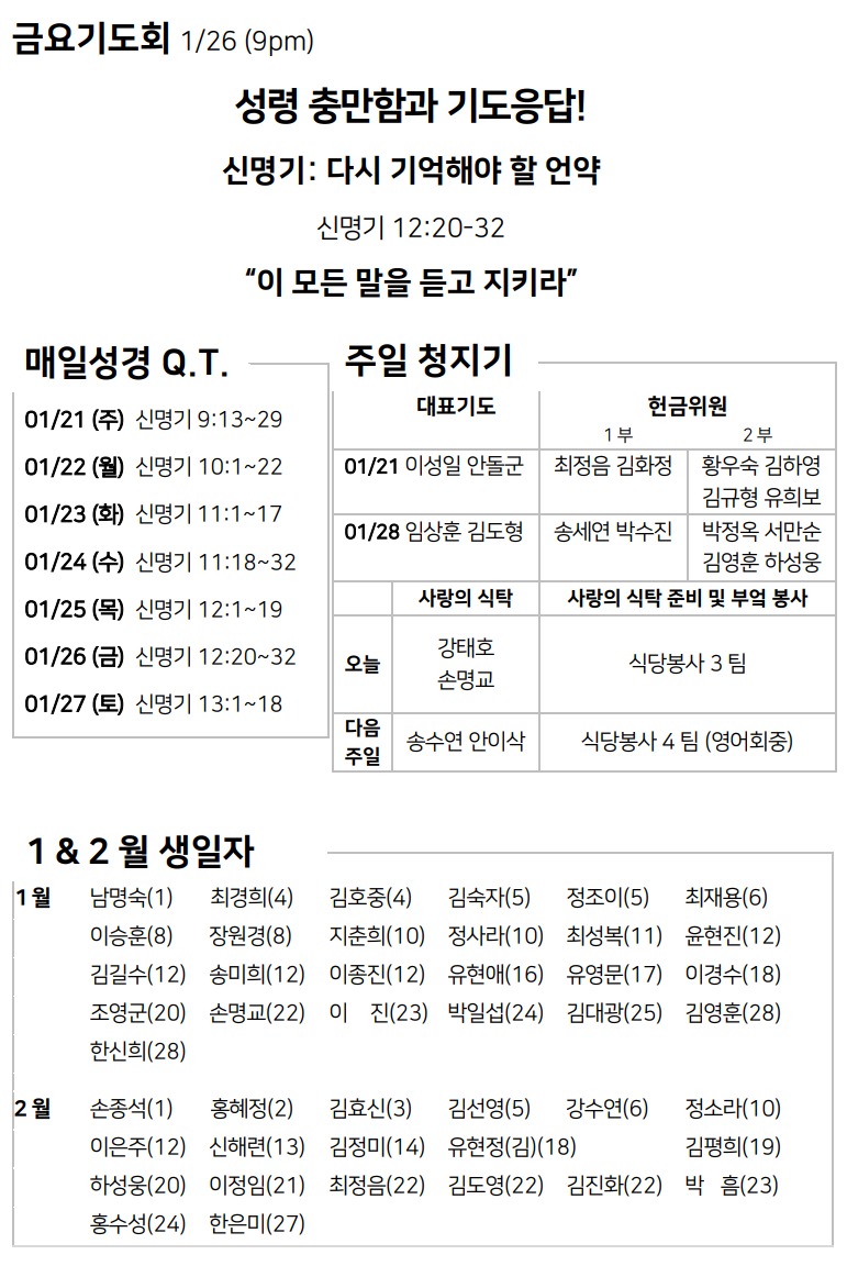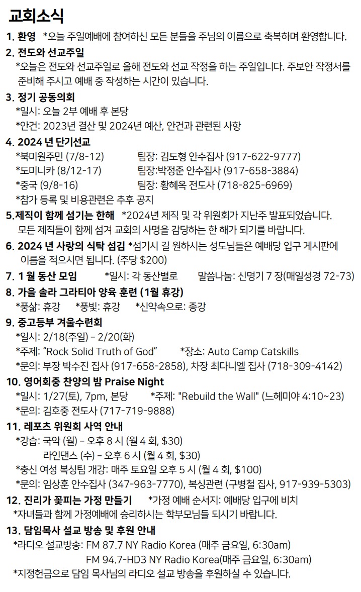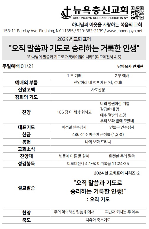 1월 21일 주일예배 주보 Jan 20, 2024 0 Comment Post By:CSKC Share: Prev Next You Might Also Like 18 Oct 2025 0 10월 19일 주일예배 주보 11 Oct 2025 0 10월 12일 주일예배 주보 5 Oct 2025 0 한마음 10월 기도제목