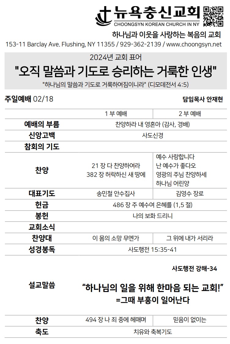 2월 18일 주일예배 주보 Feb 17, 2024 0 Comment Post By:CSKC Share: Prev Next You Might Also Like 18 Oct 2025 0 10월 19일 주일예배 주보 11 Oct 2025 0 10월 12일 주일예배 주보 5 Oct 2025 0 한마음 10월 기도제목