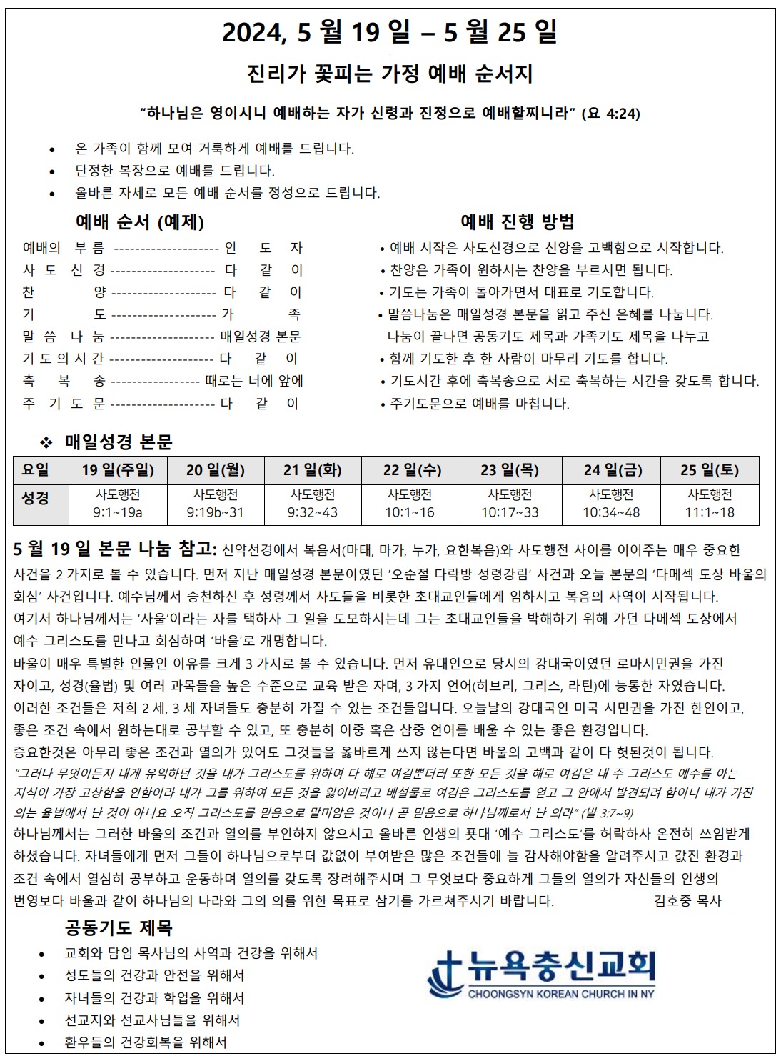 5월 3주차 가정예배지 May 18, 2024 0 Comment Post By:CSKC Share: Prev Next You Might Also Like 18 Oct 2025 0 10월 19일 주일예배 주보 11 Oct 2025 0 10월 12일 주일예배 주보 5 Oct 2025 0 한마음 10월 기도제목