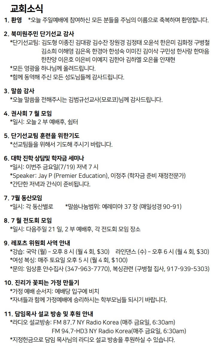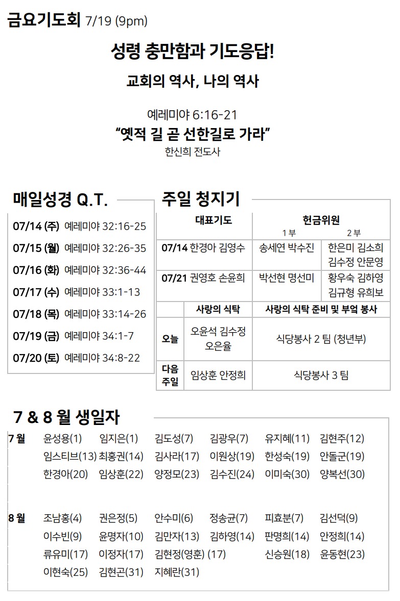 7월 14일 주일예배 주보 Jul 13, 2024 0 Comment Post By:CSKC Share: Prev Next You Might Also Like 18 Oct 2025 0 10월 19일 주일예배 주보 11 Oct 2025 0 10월 12일 주일예배 주보 5 Oct 2025 0 한마음 10월 기도제목