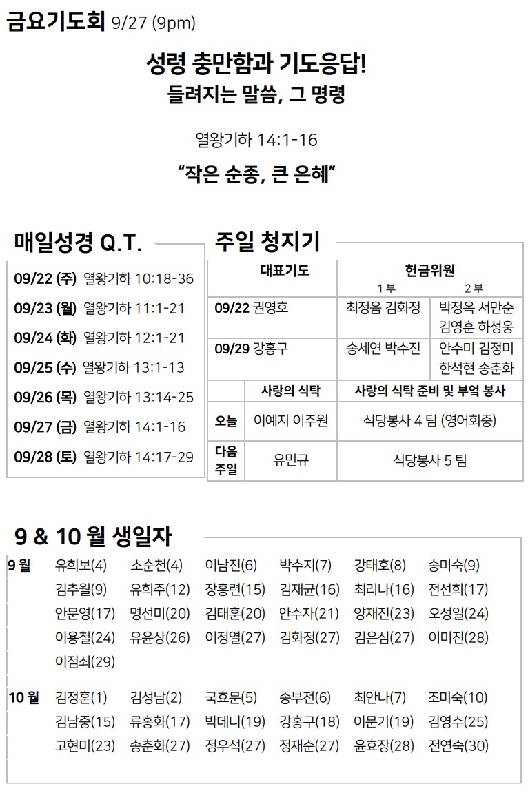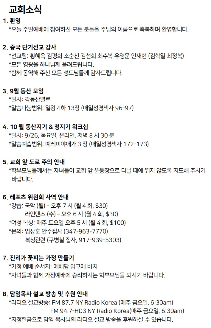 9월 22일 주일예배 주보 Sep 21, 2024 0 Comment Post By:CSKC Share: Prev Next You Might Also Like 18 Oct 2025 0 10월 19일 주일예배 주보 11 Oct 2025 0 10월 12일 주일예배 주보 5 Oct 2025 0 한마음 10월 기도제목