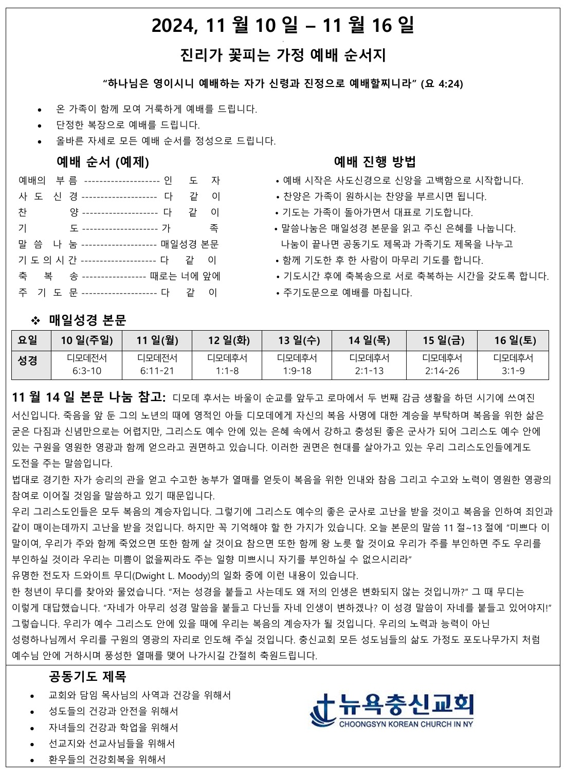 11월 2주차 가정예배지 Nov 9, 2024 0 Comment Post By:CSKC Share: Prev Next You Might Also Like 18 Oct 2025 0 10월 19일 주일예배 주보 11 Oct 2025 0 10월 12일 주일예배 주보 5 Oct 2025 0 한마음 10월 기도제목