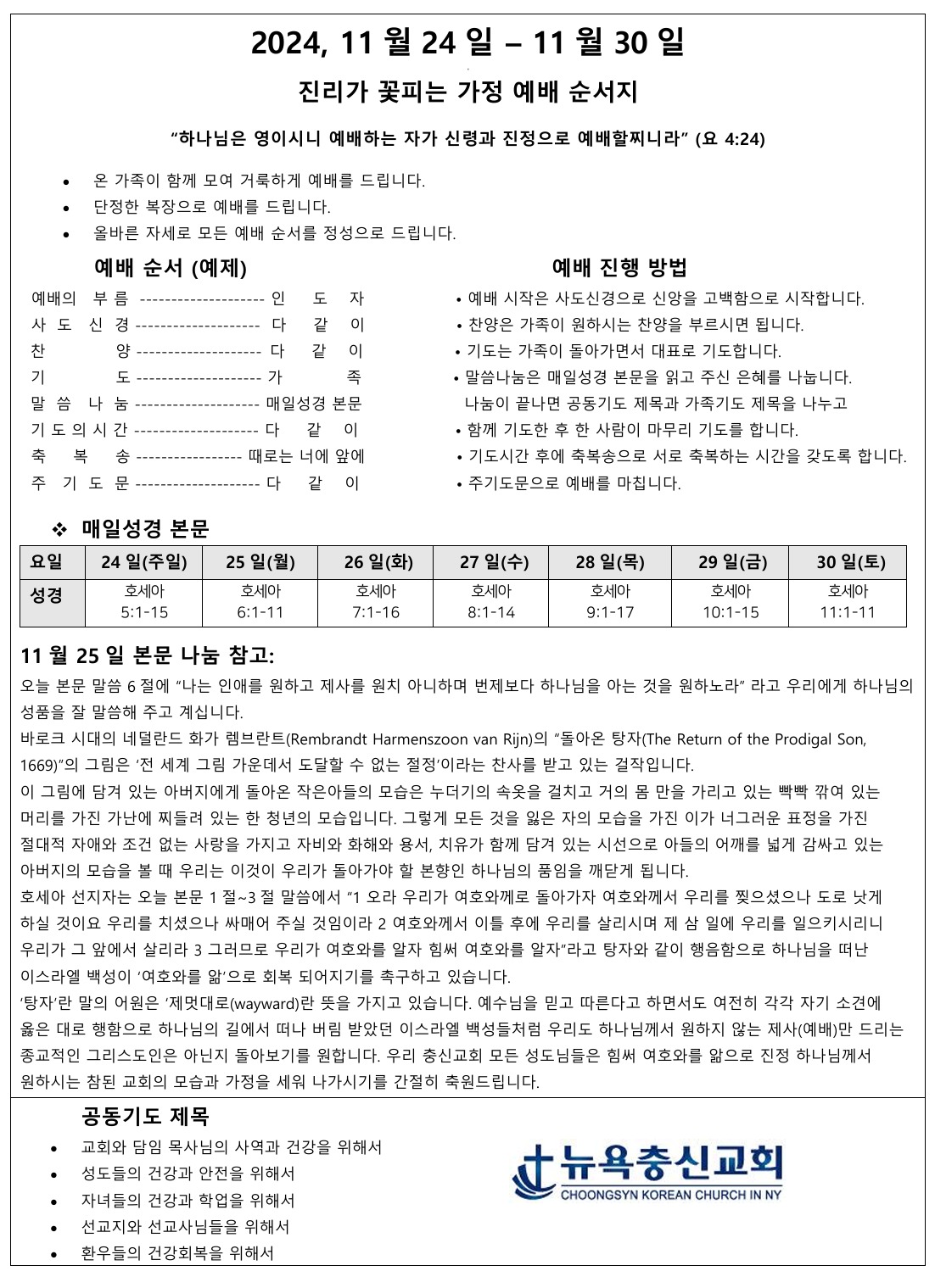 뉴욕충신교회 > 나눔 > 11월 4주차 가정예배지