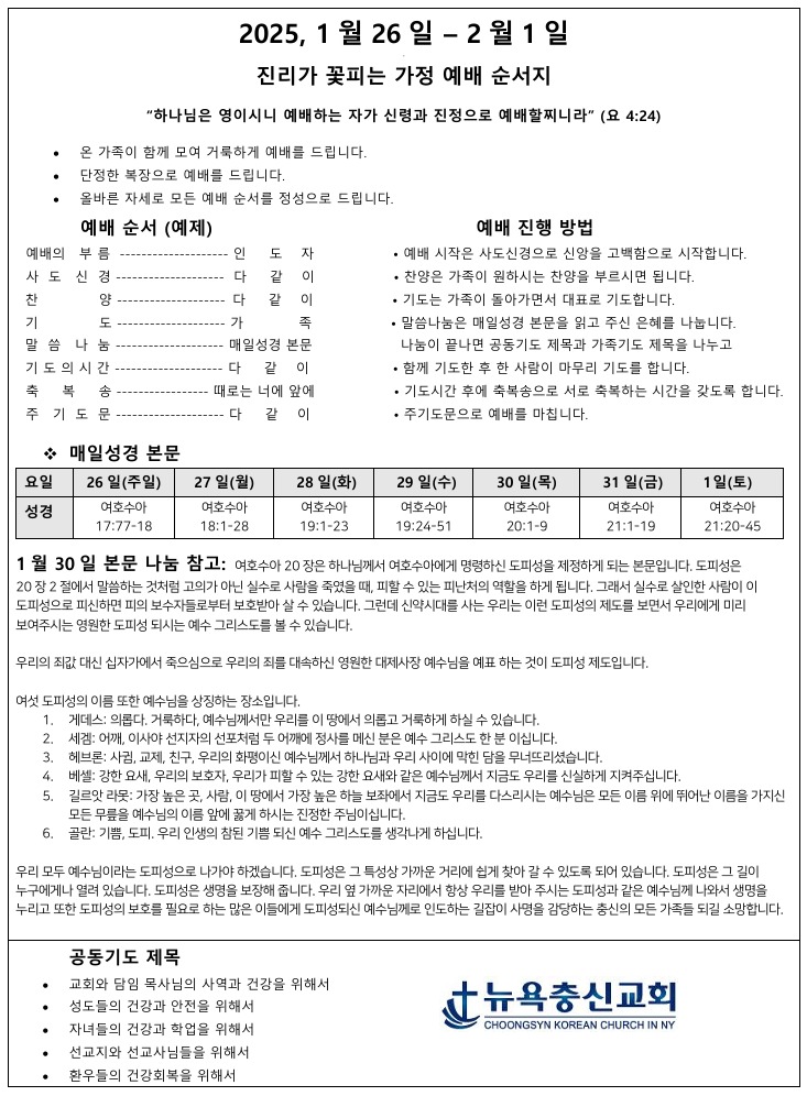 뉴욕충신교회 > 나눔 > 1월 4주차 가정예배지