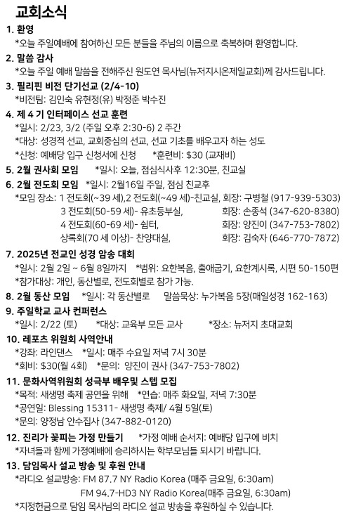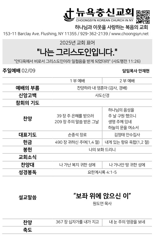 2월 9일 주일예배 주보 Feb 8, 2025 0 Comment Post By:CSKC Share: Prev Next You Might Also Like 18 Oct 2025 0 10월 19일 주일예배 주보 11 Oct 2025 0 10월 12일 주일예배 주보 5 Oct 2025 0 한마음 10월 기도제목