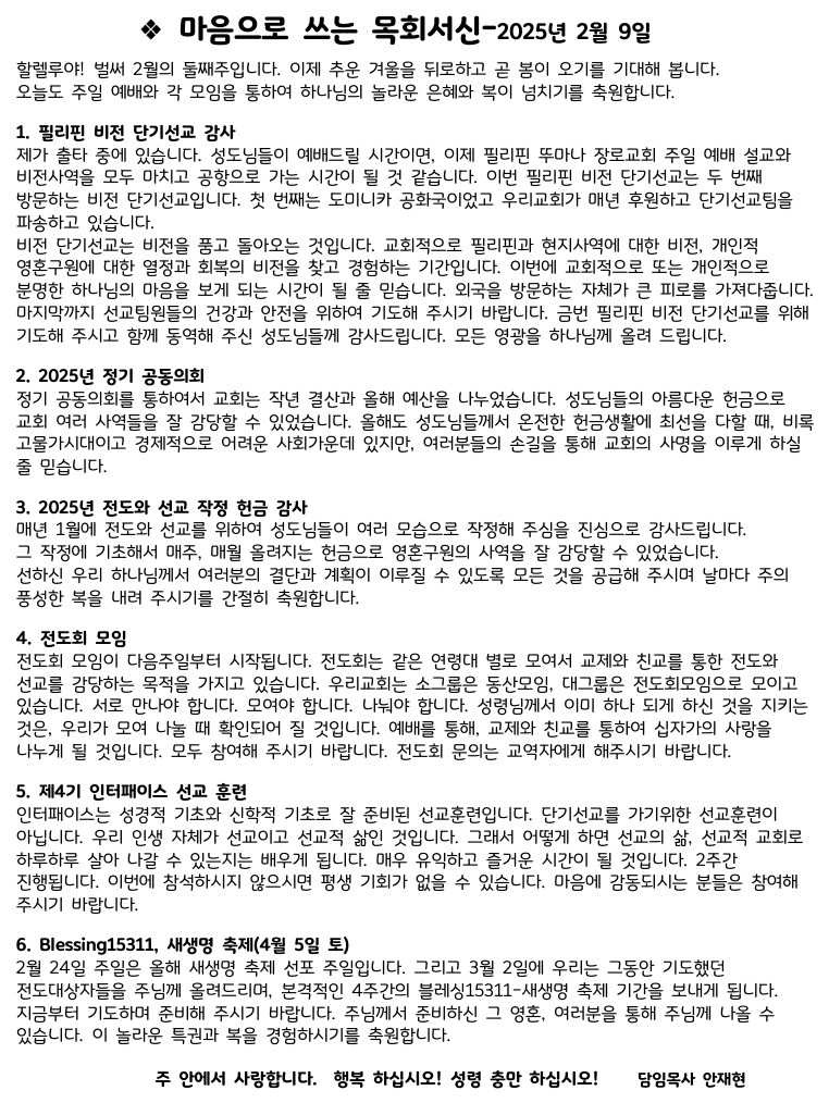 뉴욕충신교회 > 나눔 > 2월 마음으로 쓰는 목회서신