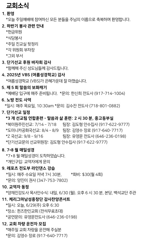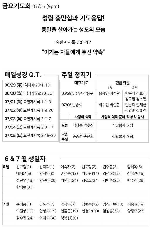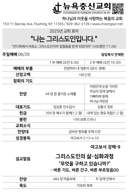 뉴욕충신교회 > 주보 > 6월 29일 주일예배 주보