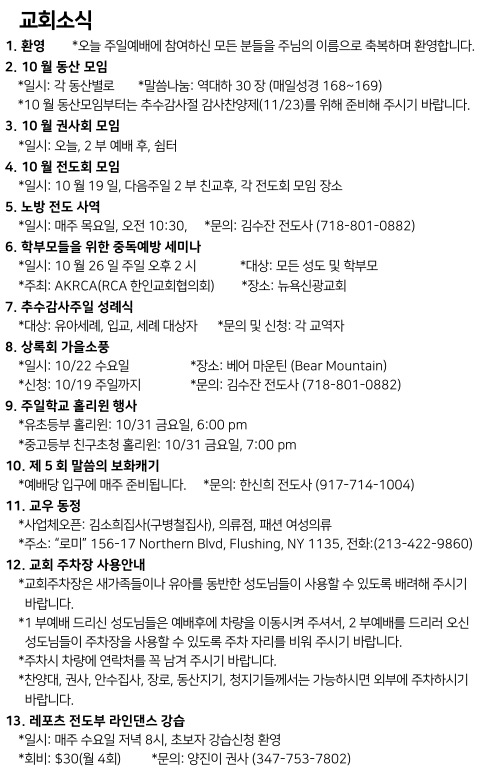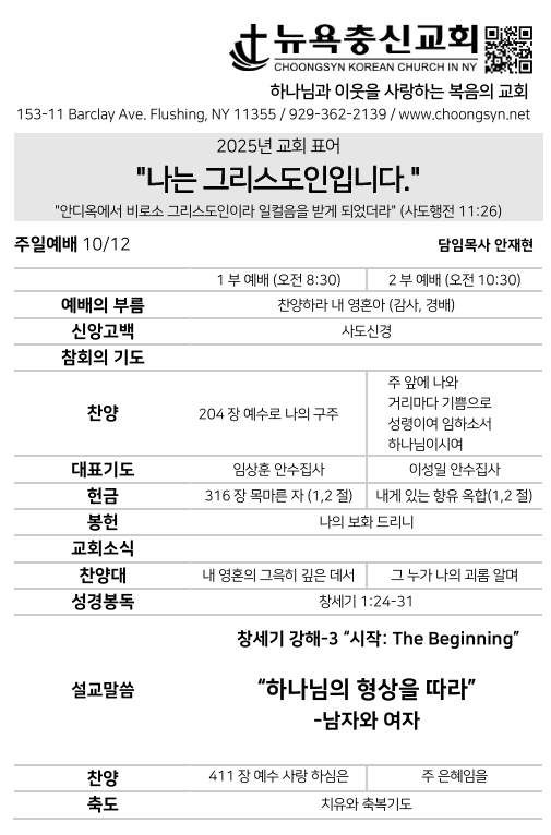 10월 12일 주일예배 주보 Oct 11, 2025 0 Comment Post By:CSKC Share: Prev Next You Might Also Like 18 Oct 2025 0 10월 19일 주일예배 주보 5 Oct 2025 0 한마음 10월 기도제목 4 Oct 2025 0 10월 5일 주일예배 주보
