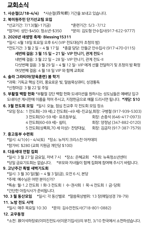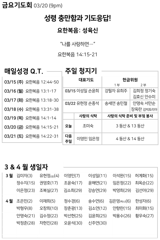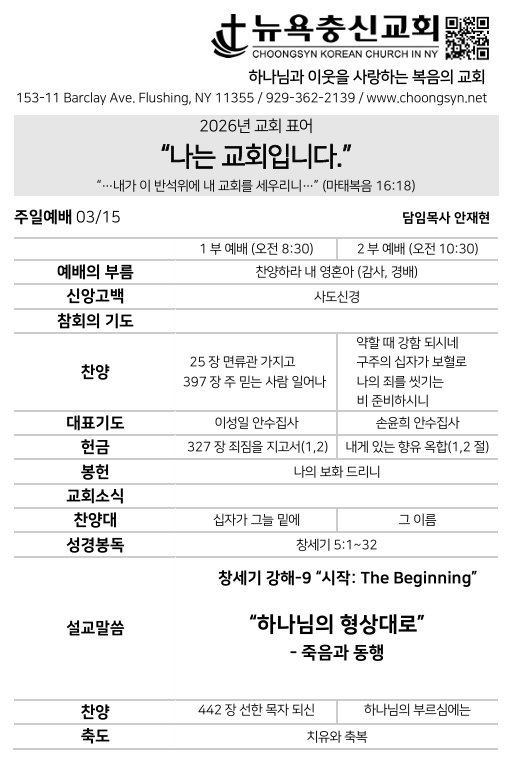 뉴욕충신교회 > 주보 > 3월 15일 주일예배 주보