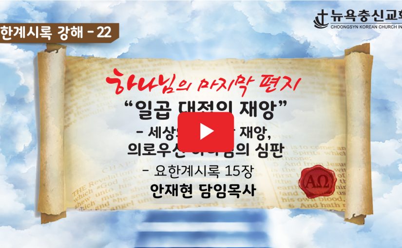 - 또 하늘에 크고 이상한 다른 이적을 보매 일곱 천사가 일곱 재앙을 가졌으니 곧 마지막 재앙이라 하나님의 진노가 이것으로 마치리로다