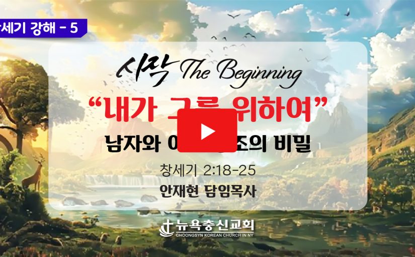 (창세기 2:18-25) 18 여호와 하나님이 이르시되 사람이 혼자 사는 것이 좋지 아니하니 내가 그를 위하여 돕는 배필을...